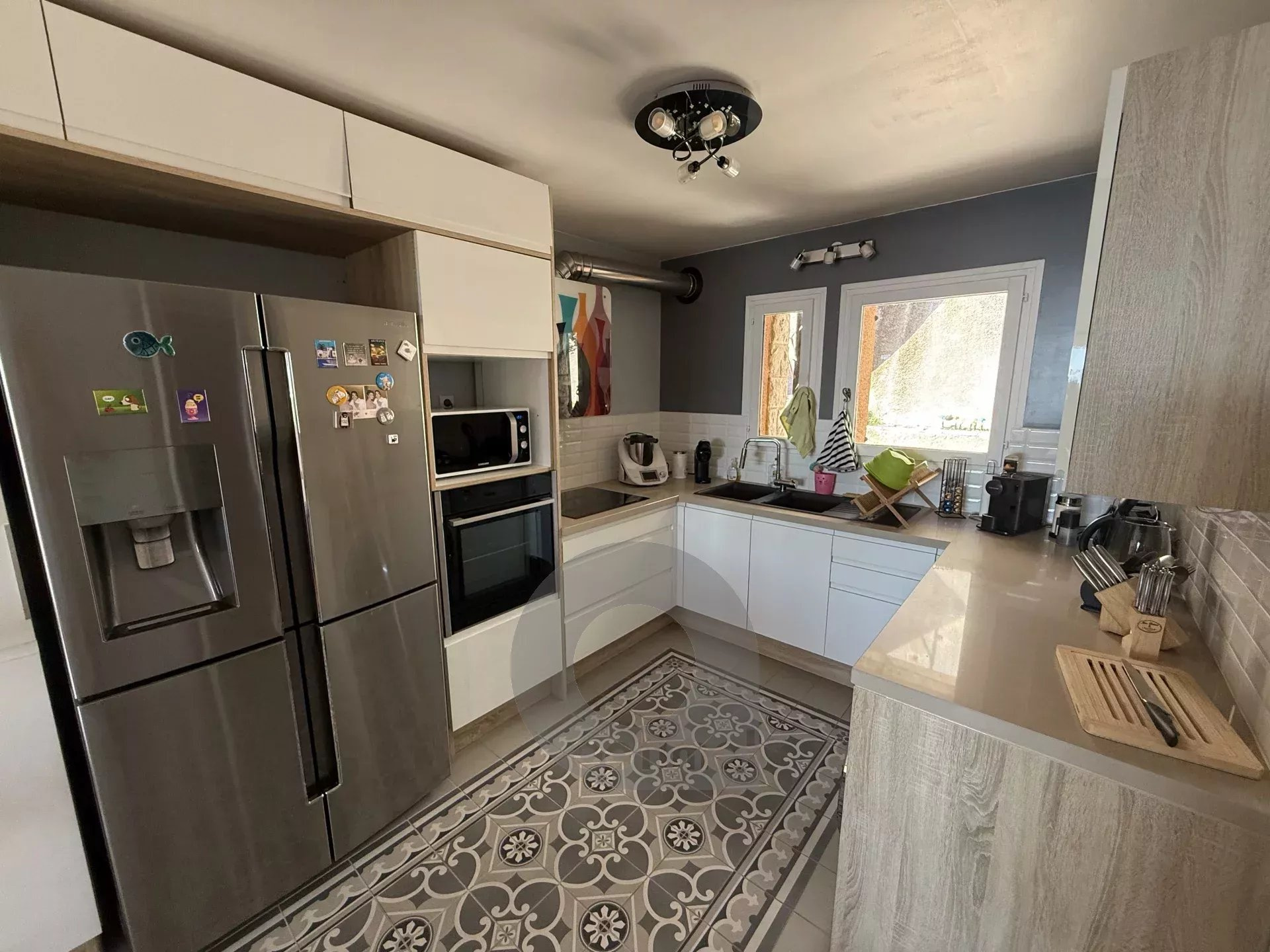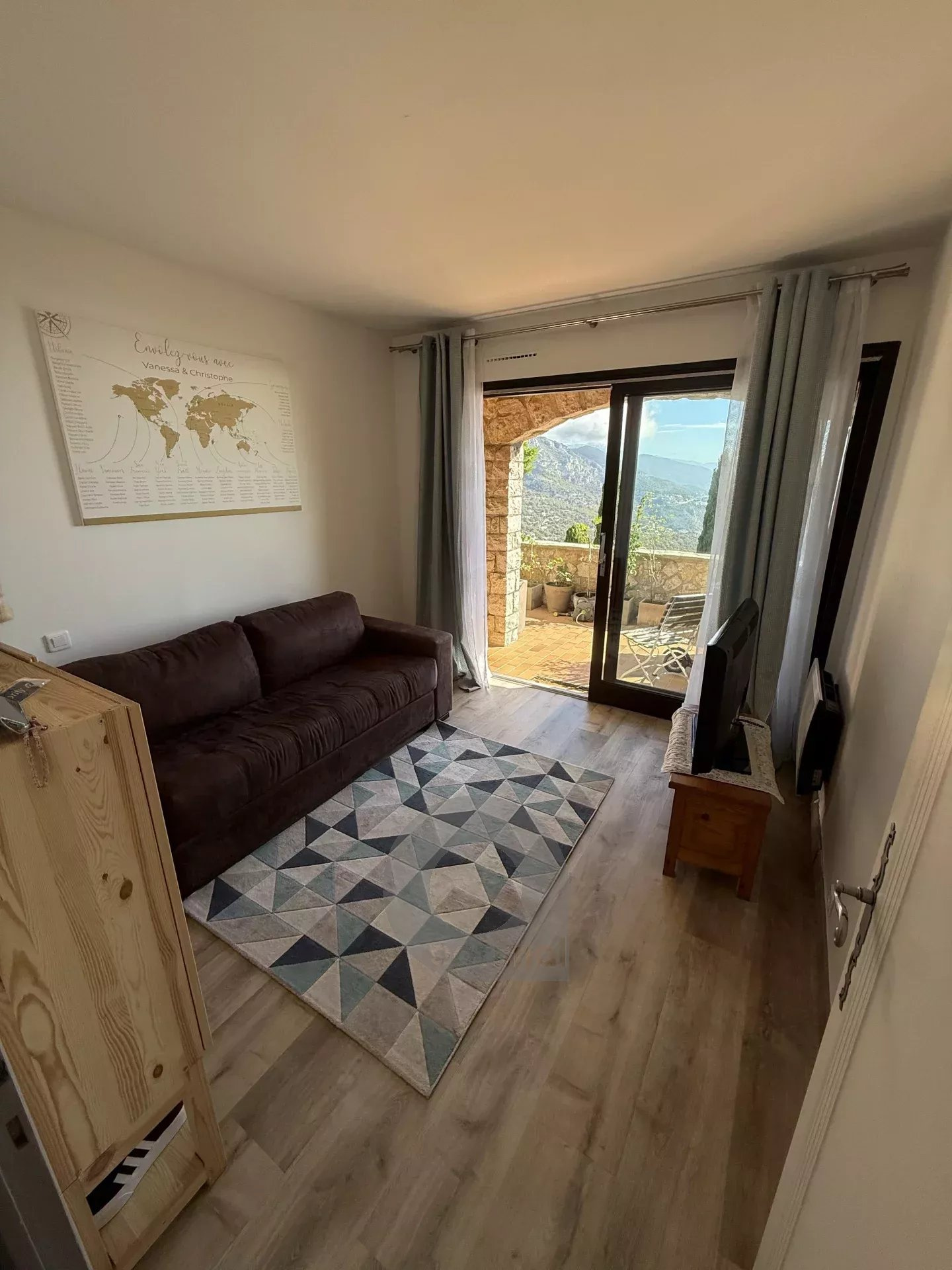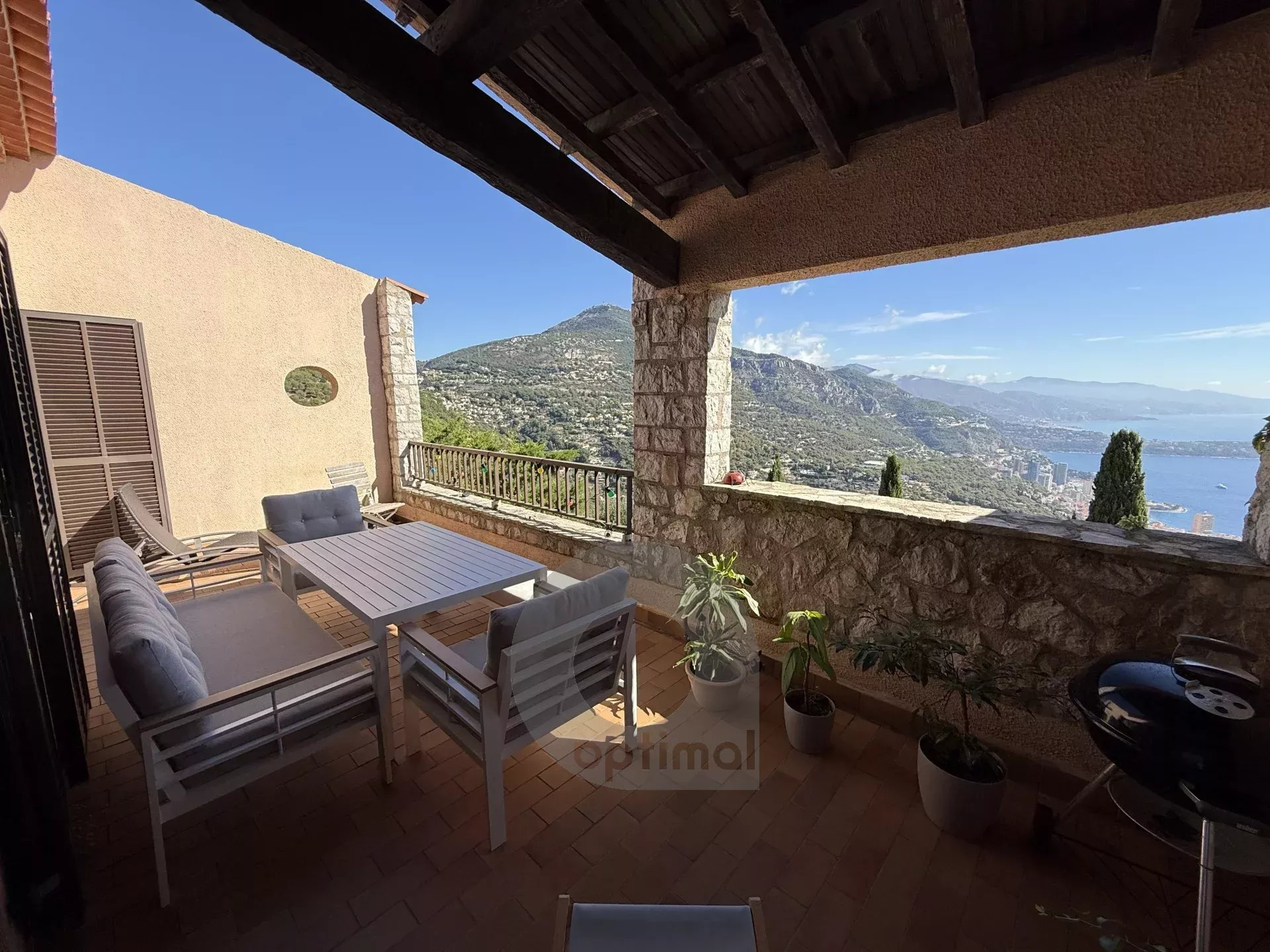 Villa La Tubie, vue magnifique sur la mer et Monaco. Sous compromis*** Perchée sur les hauteurs de Monte-Carlo ! A quelques minutes en voiture de Monaco et de l’autoroute pour Nice, tout proche du centre du magnifique village de La Turbie et ses commerces, restaurants, terrains de sport, où l’on peut se rendre à pied, au cœur d’un ensemble immobilier calme et verdoyant, sécurisé et très bien entretenu, très jolie maison mitoyenne (un côté), d’environ 94 m², sur deux niveaux, comprenant un charmant séjour cathédrale d’environ 40 m² (parquet en chêne massif, poêle à bois et poutres apparentes), une cuisine us moderne, deux chambres confortables, une salle de bains, une salle d’eau, deux wc, un dressing, espace jardin, ainsi que deux terrasses qui complètent ce cadre de vie exceptionnel dont une offrant un panorama unique sur les montagnes et la mer de Monaco à l’Italie. Stationnement facile juste devant la villa. Vous serez séduit par son atmosphère chaleureuse et ses vues spectaculaires. Les informations sur les risques auxquels ce bien est exposé sont disponibles sur le site Géorisques : georisques.gouv.fr.